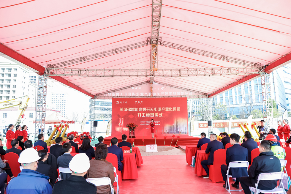 陽春三月,春和景明,正是播種希望、培植根基之時。在禮炮聲中,尹偉董事長與各位領導同擎金鍬為英可瑞智能高頻開關電源產業化項目培土奠基。