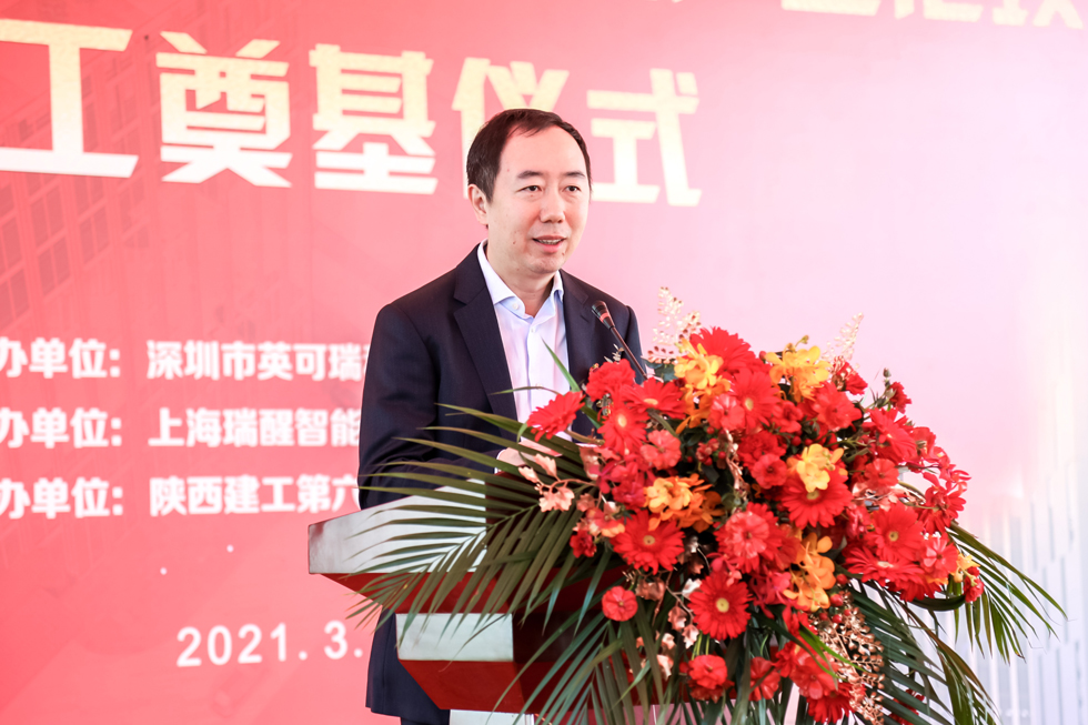 英可瑞尹偉董事長、上海市閔行區委書記倪耀明書記、區規劃和自然資源局劉堅局長、莘莊工業區管委會唐為群副主任、陜西建工第六建集團有限公司趙春輝董事長等相關領導、合作單位人員共同參加本次奠基儀式。