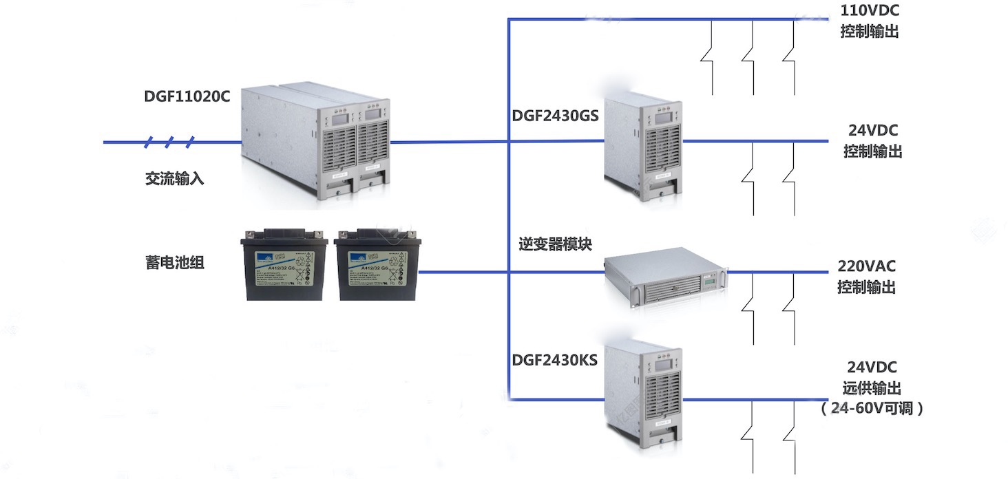 交流輸入正常時,交流電源經充電模塊輸出DC110V母線、母線上接UPS、24VDC降壓模塊24~56VDC可調模塊,同時給DC110V負載供電,充電模塊同時對蓄電池組進行充電。一旦交流輸入中斷時,充電模塊停止工作,蓄電池組直接向110VDC母線提供電力負荷,從而保證110VDC母線不間斷供電。